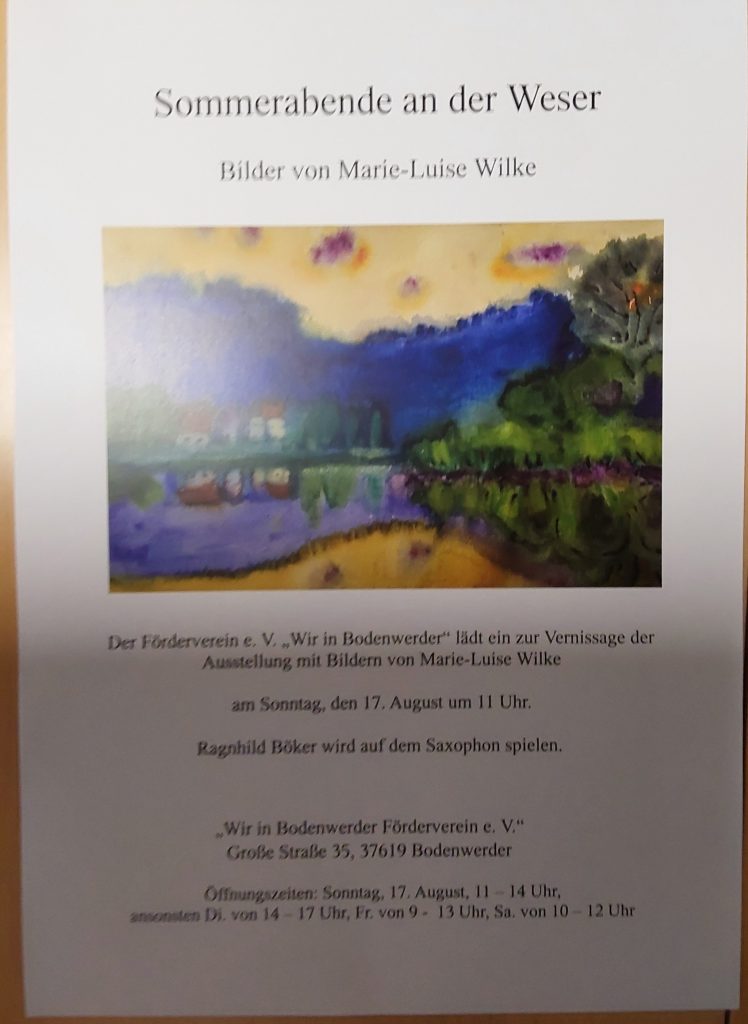 Ausstellung im Treffpunkt mit Bildern von Marie-Luise Wilke bis Mitte Oktober 2025
